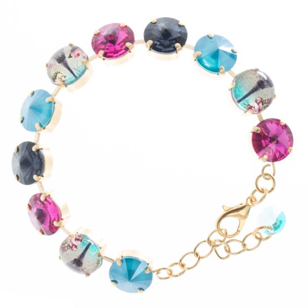 Paris Eiffel Tower YPMCO 12mm Crystal Bracelet - Pink &Teal