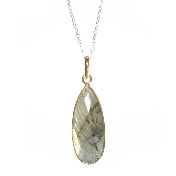 Shimmery Labradorite Elongated Teardrop Pendant Necklace with 30" Gold Filled Chain