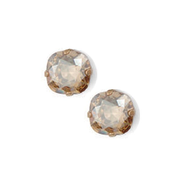 Champagne Swarovski Crystals14 K Gold Plated Setting1/2" by 1/2"Also available in Shade, Ice, Caribbean Blue, Teal, Pacific Opal, Marine, Smoke Topaz, Khaki, Coral, Rosewater, Tanzanite, Lavender, Jet Black, Sand Opal or Midnight Blue. Please specify desired color in the "Notes" box at the end of checkout. mfg: La Vie Parisienne Jewelry by Catherine Popesco