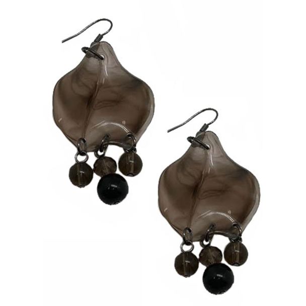 Sweet Lola Earrings - Flower Petal Dark Translucent Grey with Beads