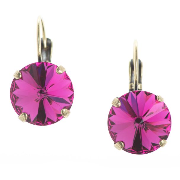 YPMCO 12mm Fuchsia Pink Rivoli Swarovski Crystal Earrings