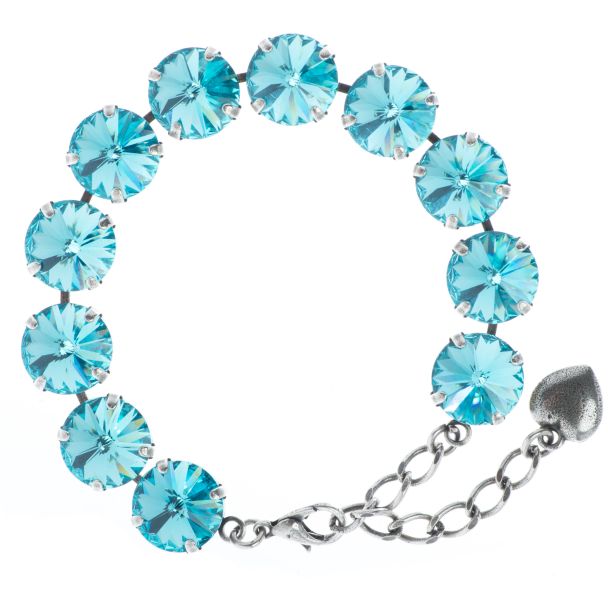 YPMCO 12mm Light Turquoise Rivoli Swarovski Crystal Silver Bracelet